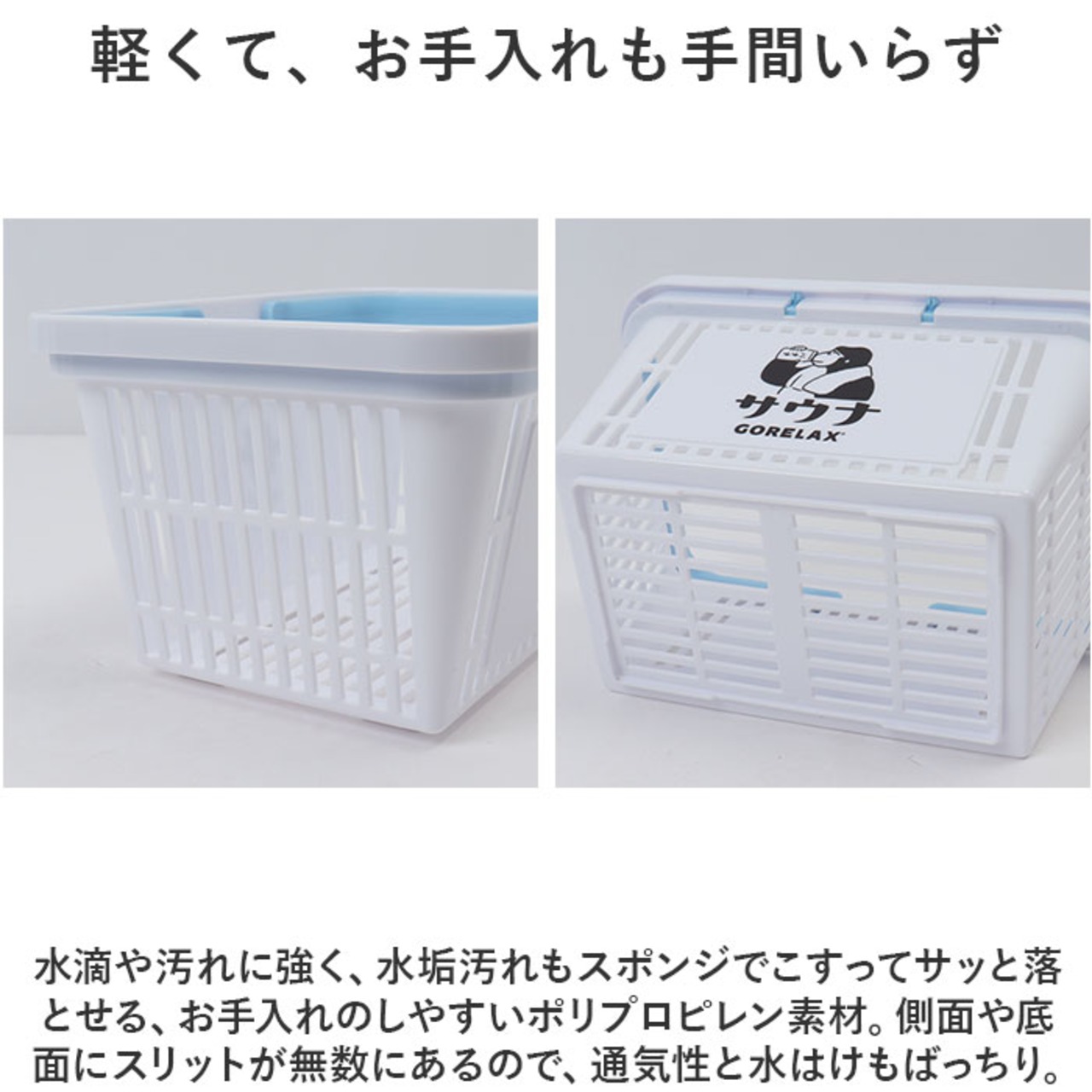 ・水滴や汚れに強く、水垢汚れもスポンジでこすってサッと落とせる、お手入れのしやすいポリプロピレン素材。側面や底面にスリットが無数にあるので、通気性と水はけもばっちり。