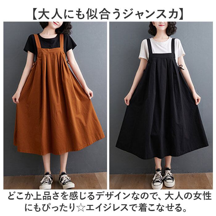 ジャンパースカート ロング 通販 ジャンバースカート ジャンスカ サロペット スカート サロペットワンピース 体型カバー ワンピース 大人 レディース 婦人服 ロングスカート おしゃれ かわいい つなぎ ワンピ オールインワン マタニティ ファッション
