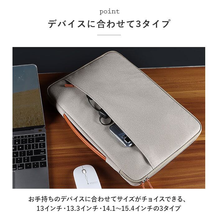 ・お手持ちのデバイスに合わせてサイズがチョイスできる、13インチ・13.3インチ・14.1~15.4インチの3タイプ。