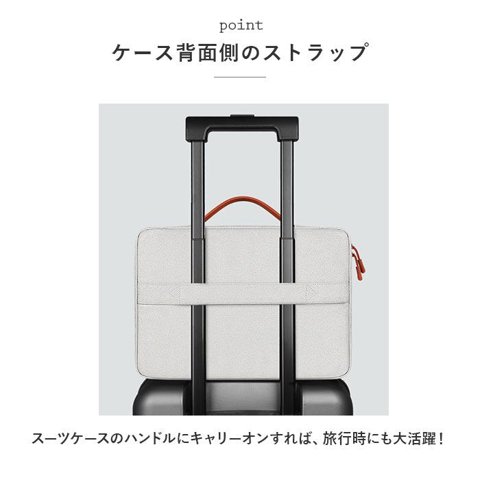 ・ケース背面側のストラップでスーツケースのハンドルにキャリーオンすれば、旅行時にも大活躍!