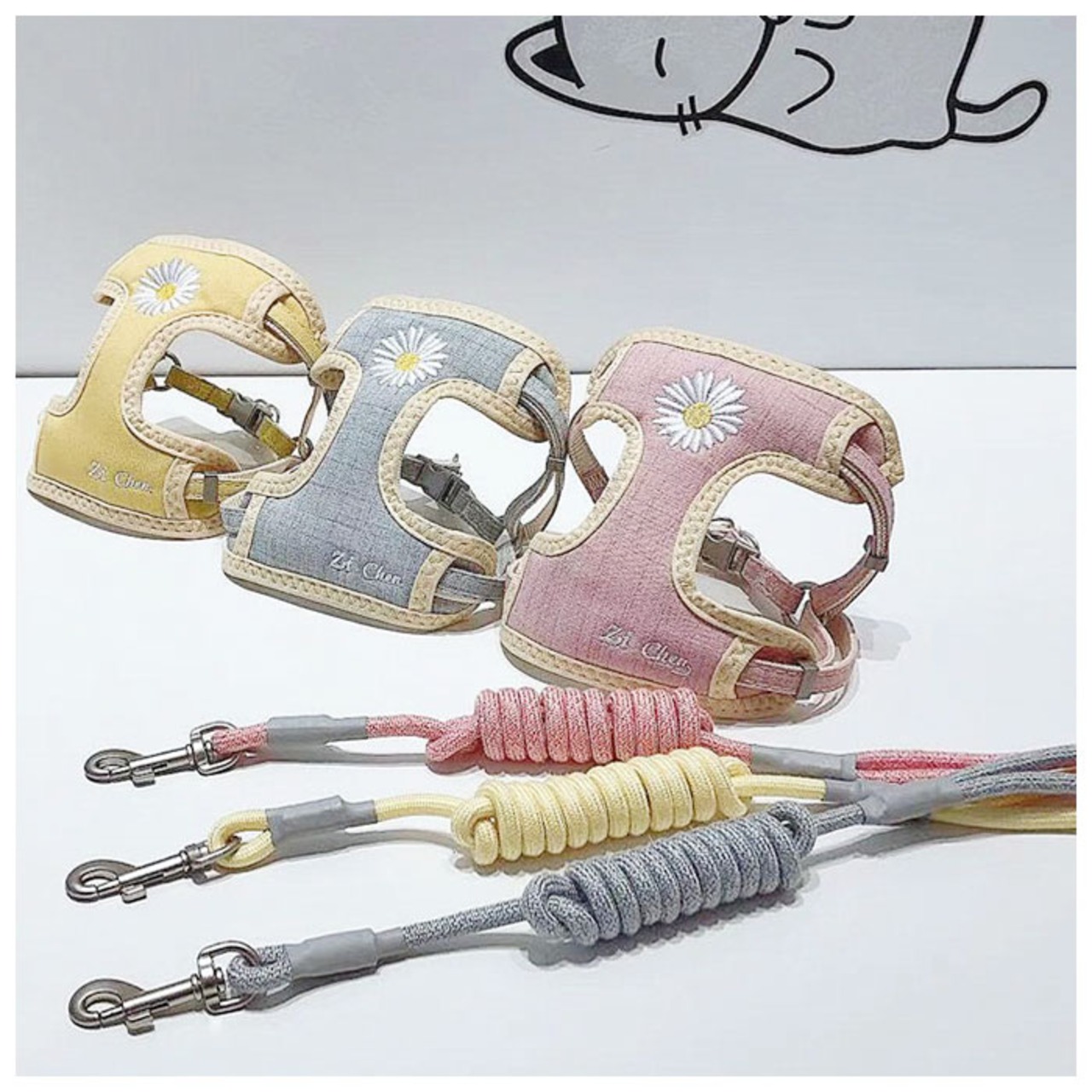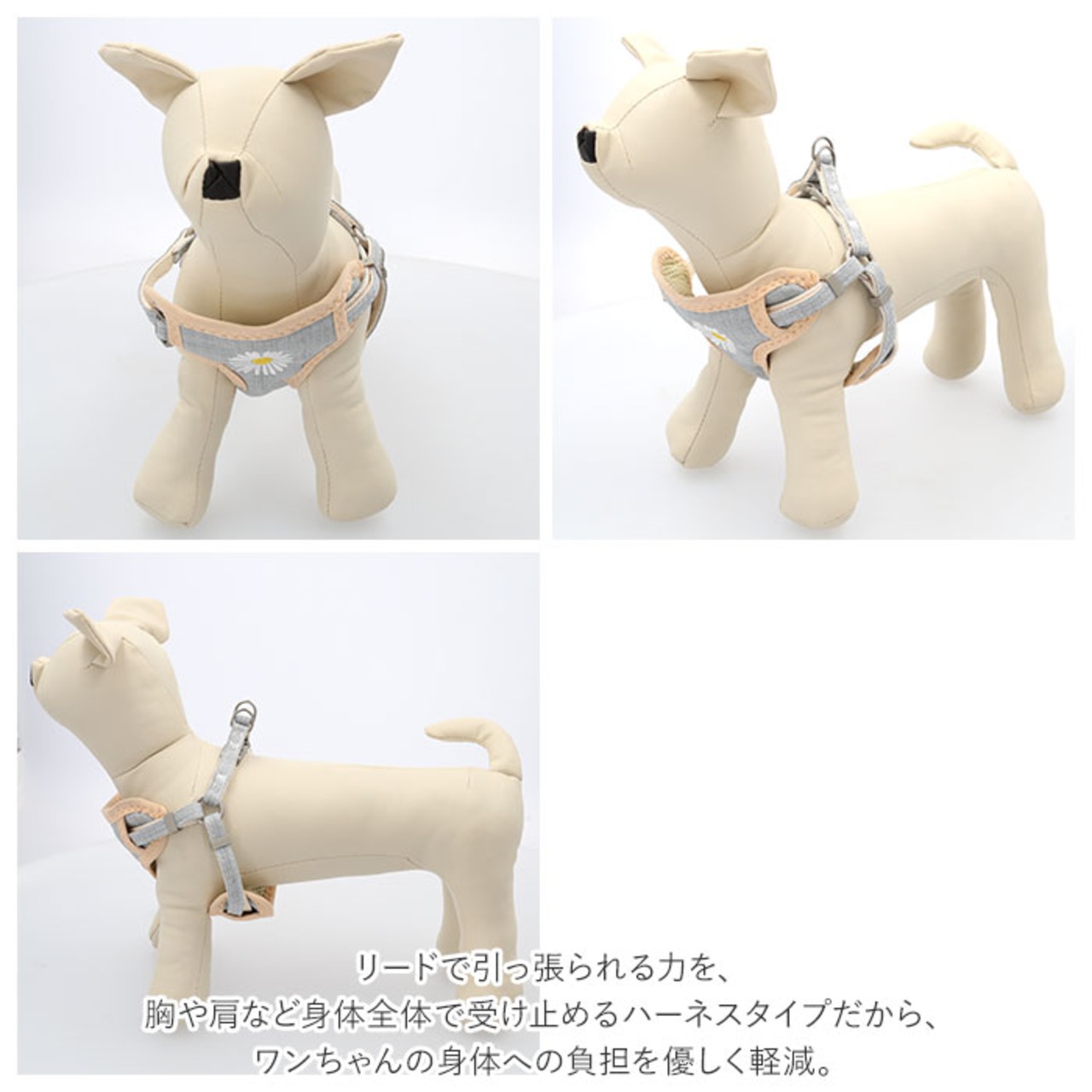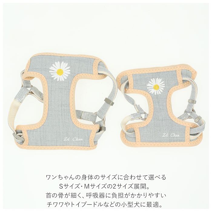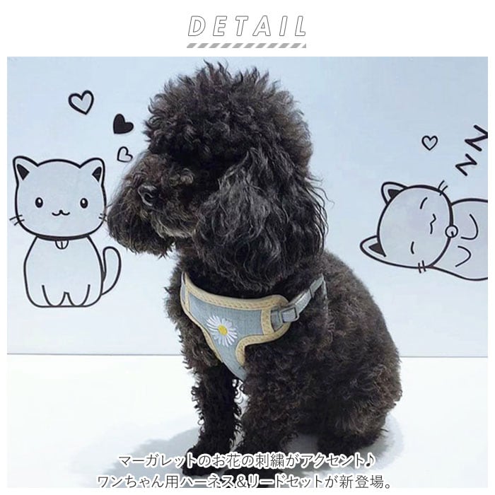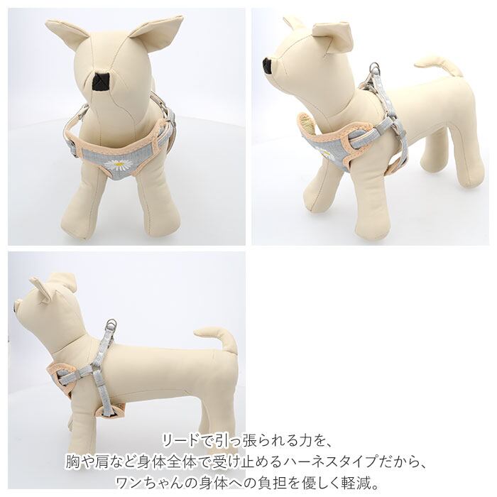 ・マーガレットのお花の刺繍がアクセント♪ワンちゃん用ハーネス&リードセットが新登場。