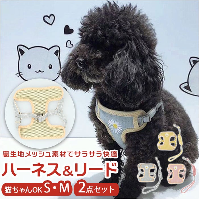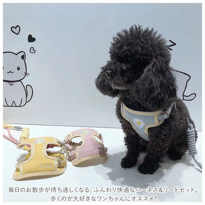 犬 リード ハーネス 通販 小型犬 中型犬 可愛い お散歩 おしゃれ オシャレ ロープ 2点セット 犬用ハーネス お出かけ けん引ロープ ネコ 猫 雑貨 犬用品 ペット用品
