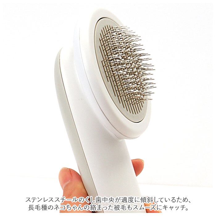 ・ステンレススチールのくし歯中央が適度に傾斜しているため、長毛種のネコちゃんの絡まった被毛もスムーズにキャッチ。