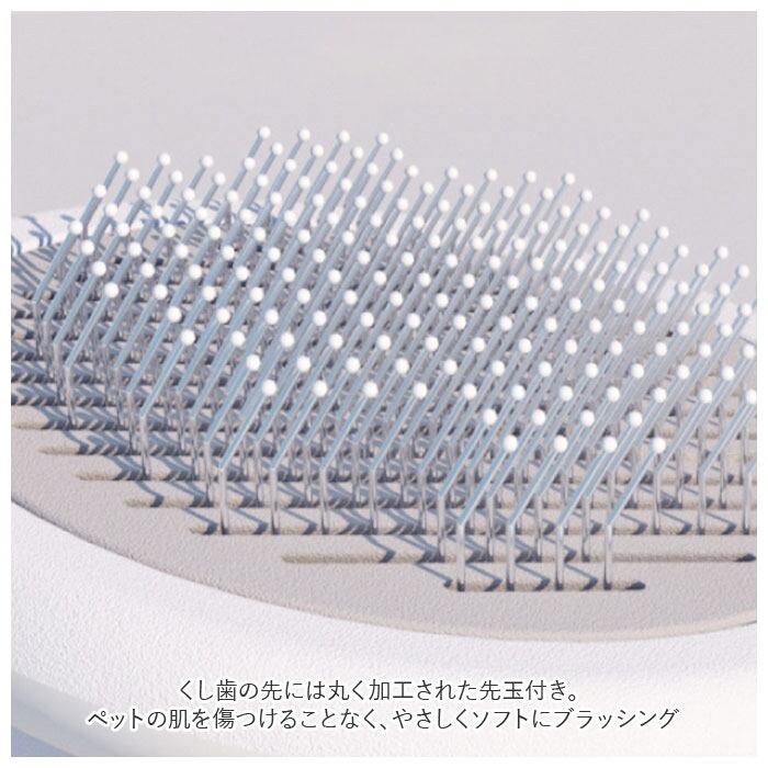 ・くし歯の先には丸く加工された先玉付き。ペットの肌を傷つけることなく、やさしくソフトにブラッシング。
