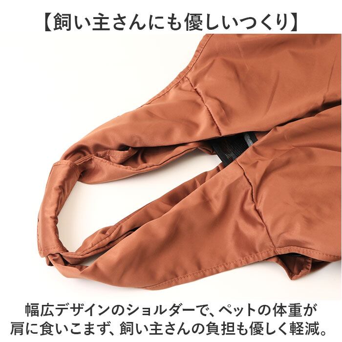 ・幅広デザインのショルダーで、ペットの体重が肩に食いこまず、飼い主さんの負担も優しく軽減。