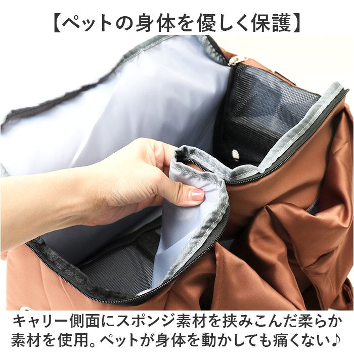 ・キャリー側面にスポンジ素材を挟みこんだ柔らか素材を使用。ペットが身体を動かしても痛くない♪