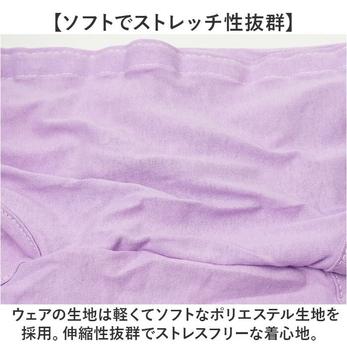 ・ウェアの生地は軽くてソフトなポリエステル生地を採用。伸縮性抜群でストレスフリーな着心地。