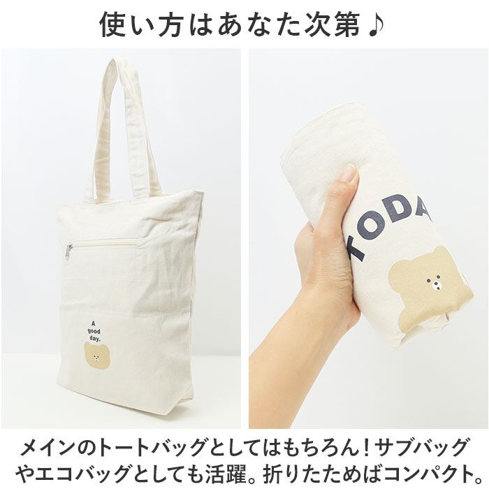 ・メインのトートバッグとしてはもちろん!サブバッグやエコバッグとしても活躍。折りたためばコンパクト。