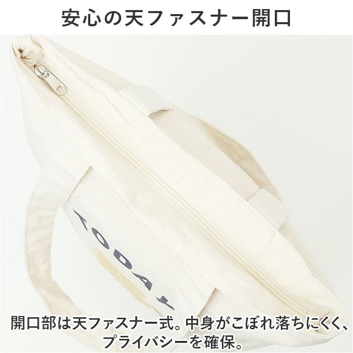 ・開口部は天ファスナー式。中身がこぼれ落ちにくく、プライバシーを確保。
