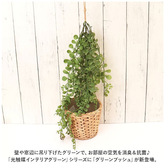 ・壁や窓辺に吊り下げたグリーンで、お部屋の空気を消臭&抗菌♪「光触媒インテリアグリーン」シリーズに「グリーンブッシュ」が新登場。