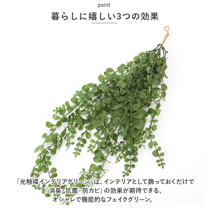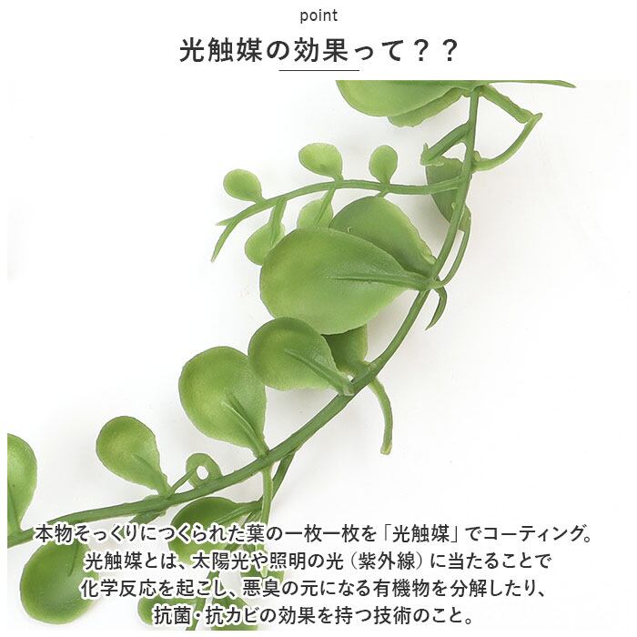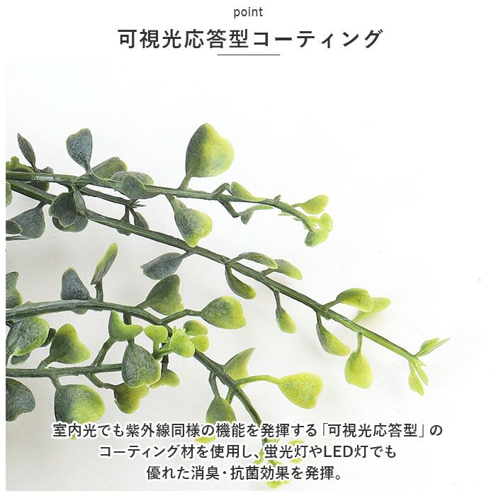・「光触媒インテリアグリーン」は、インテリアとして飾っておくだけで「消臭・抗菌・防カビ」の効果が期待できる、オシャレで機能的なフェイクグリーン。