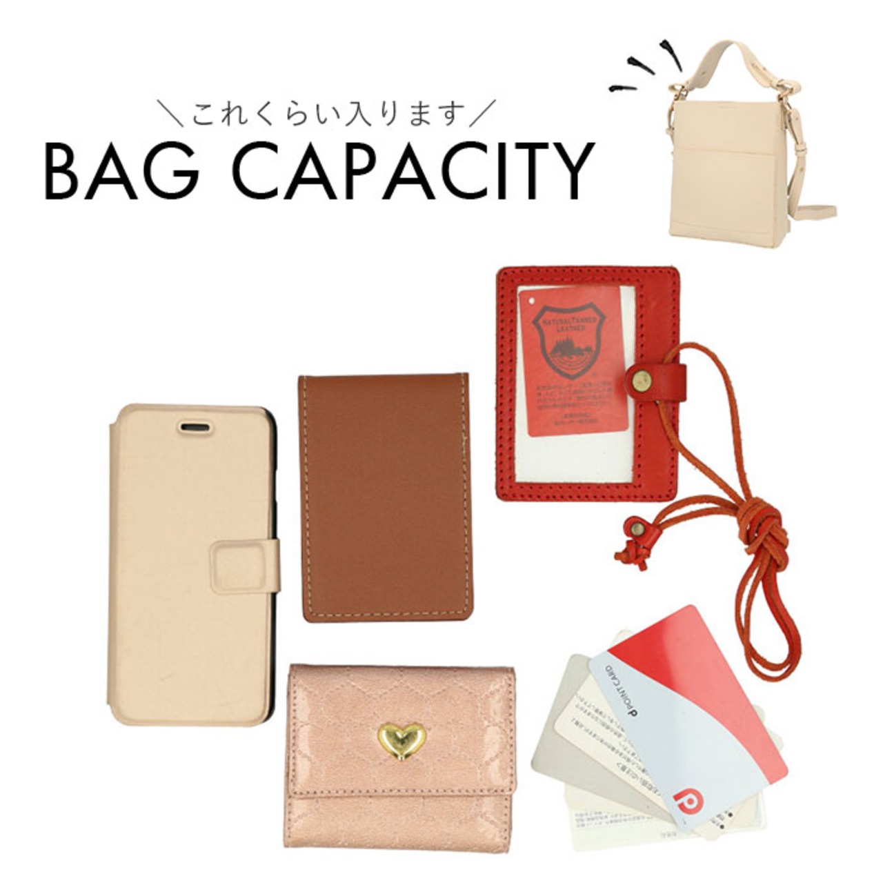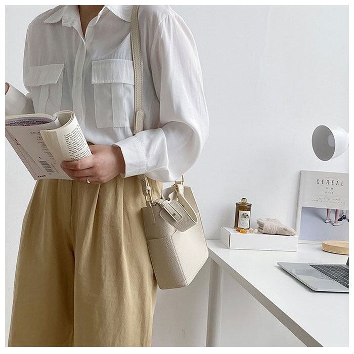 ・シボ感が特徴的な合皮を使用。コーデの雰囲気を崩さないベーシックなカラーバリエーションとサイズ感が魅力。