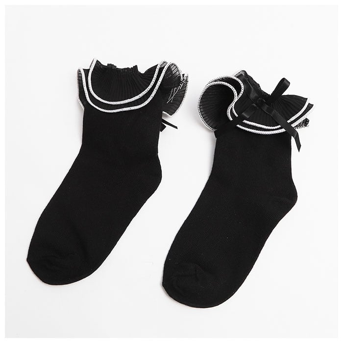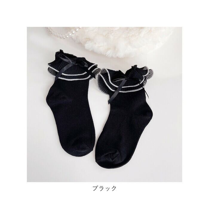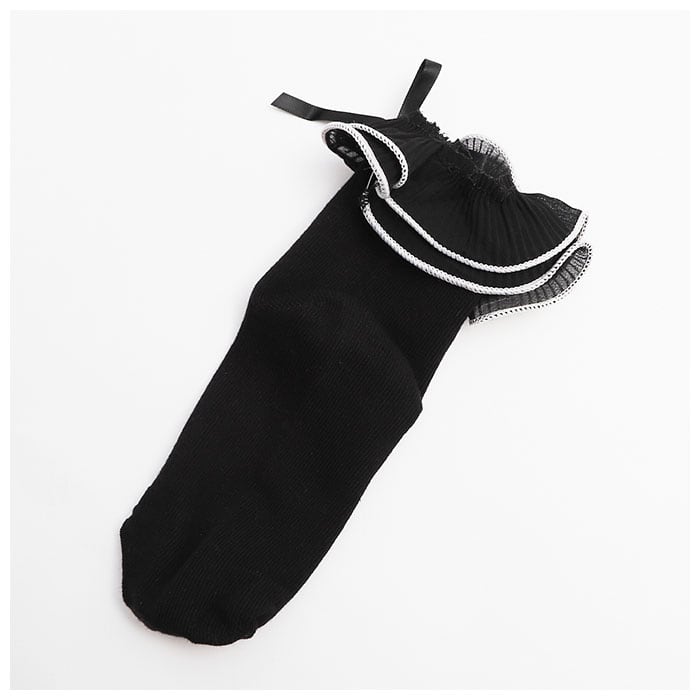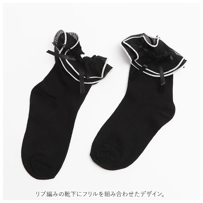 ・リブ編みの靴下にフリルを組み合わせたデザイン。
