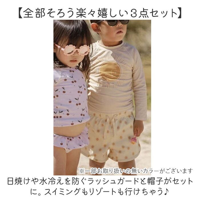 ・日焼けや水冷えを防ぐラッシュガードと帽子がセットに。スイミングもリゾートも行けちゃう♪