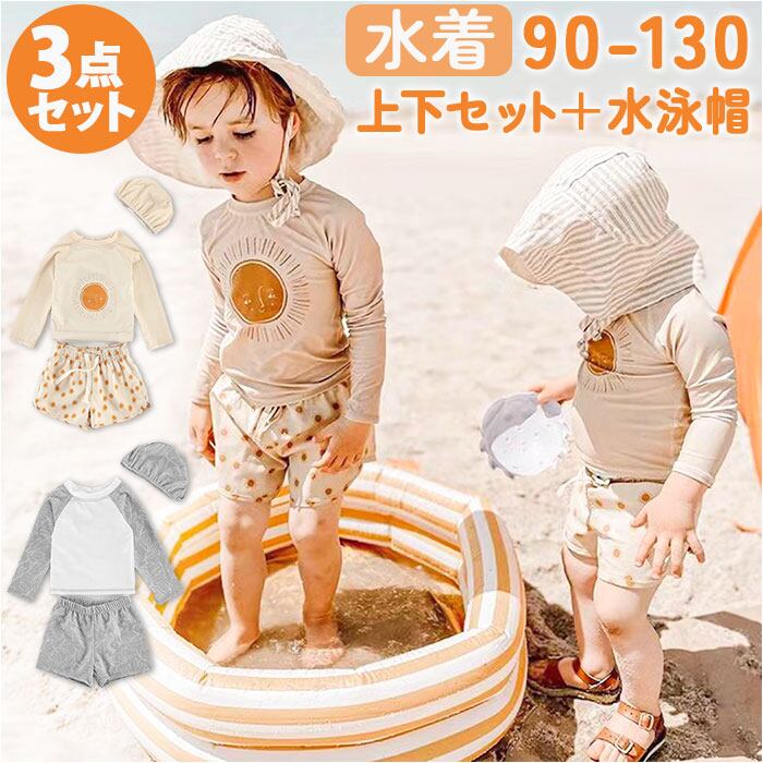 子供 水着 男の子 通販 スイムウェア 長袖 シンプル かわいい ラッシュガード セパレート 上着 ベビー水着 おしゃれ スイムキャップ 日焼け対策 紫外線対策 速乾性 男女兼用 男児 温泉 プール 海水浴 水泳スクール スポーツウェア