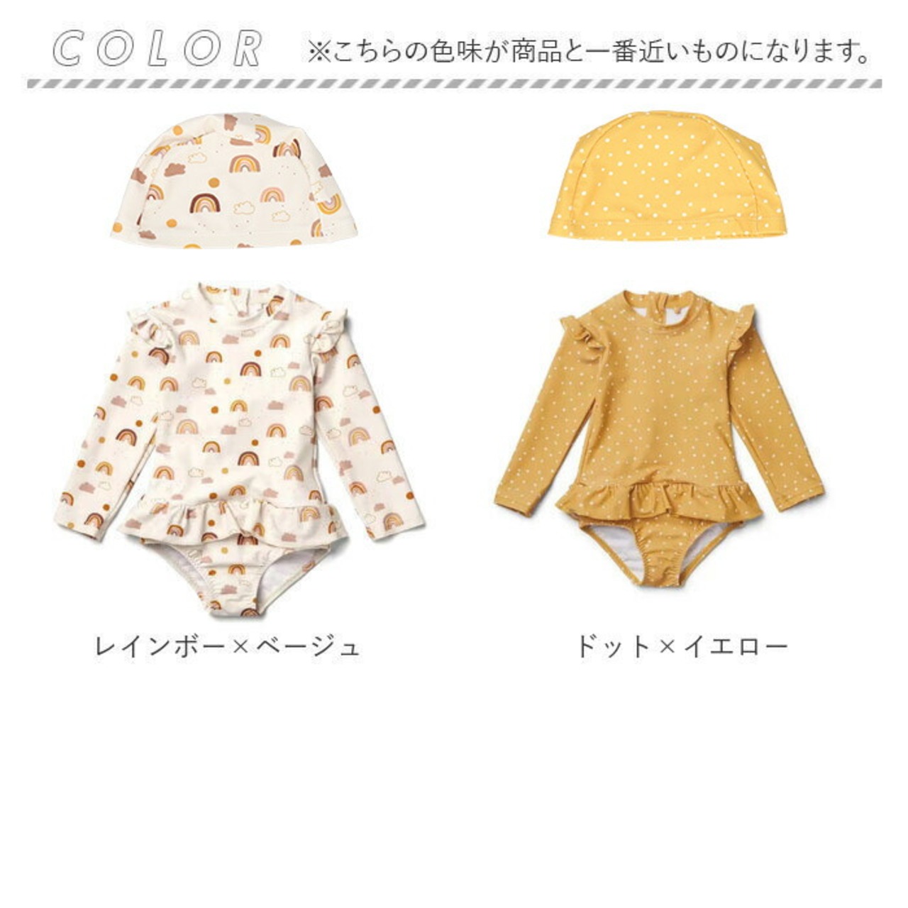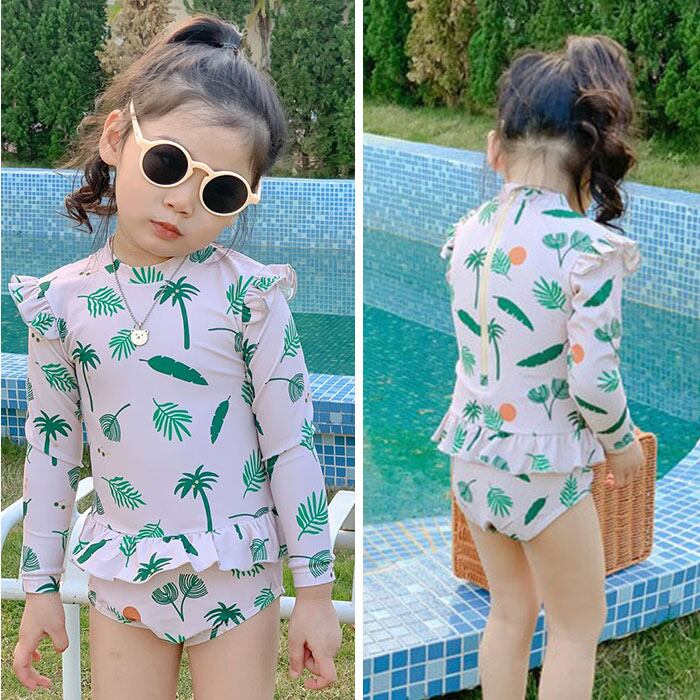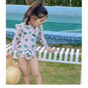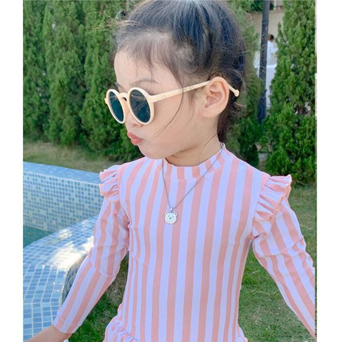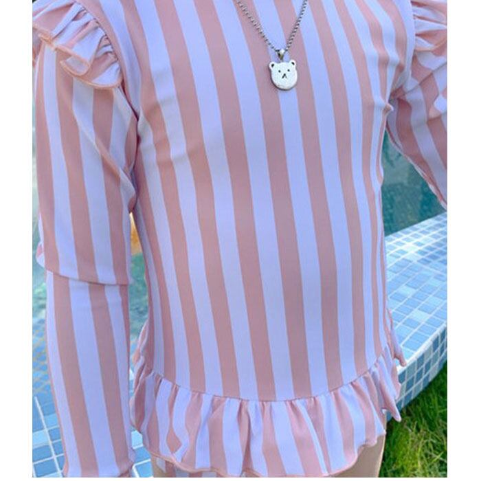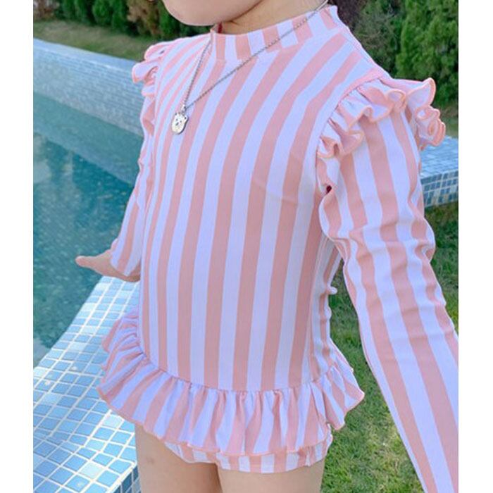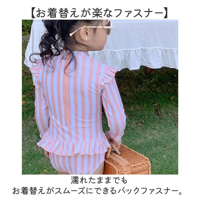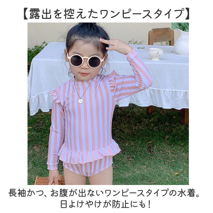 ・長袖かつ、お腹が出ないワンピースタイプの水着。日よけやけが防止にも!