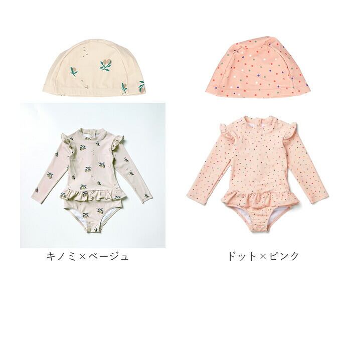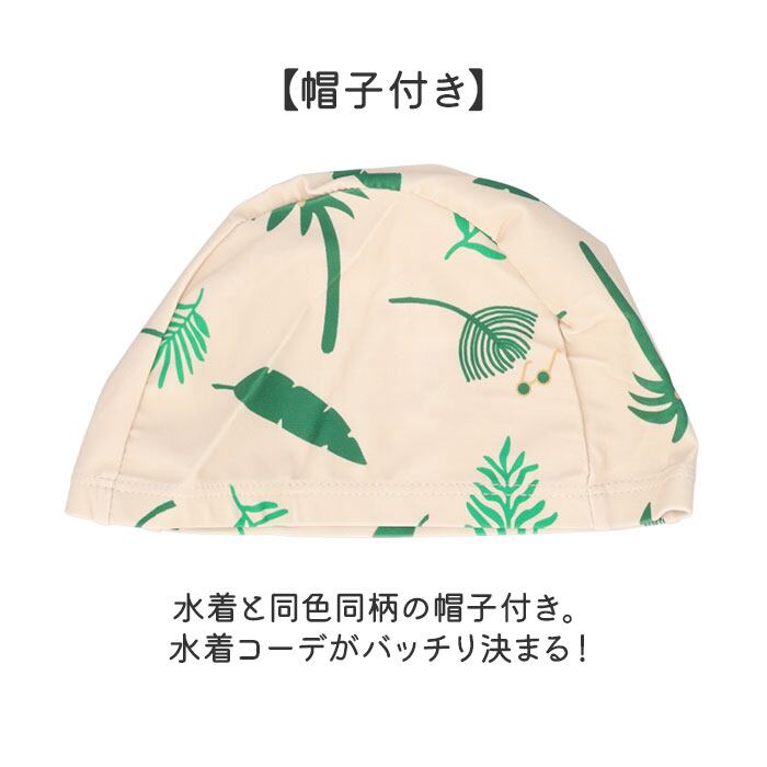 ・水着と同色同柄の帽子付き。水着コーデがバッチリ決まる!