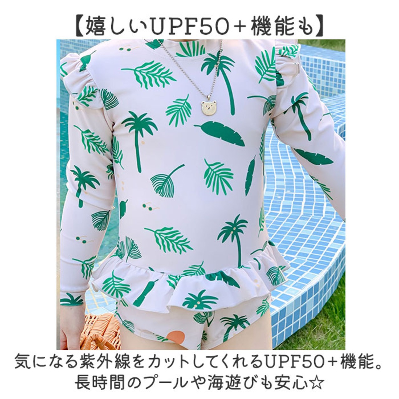・気になる紫外線をカットしてくれるUPF50+機能。長時間のプールや海遊びも安心☆