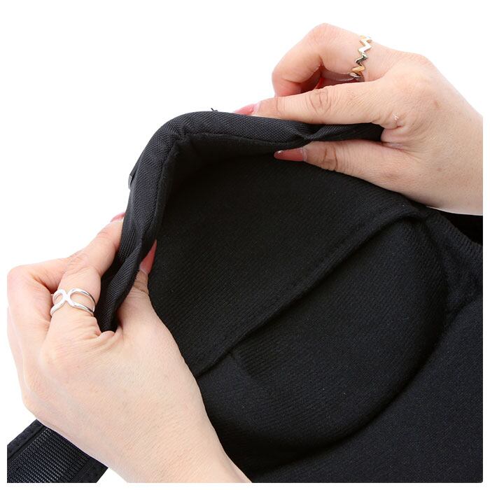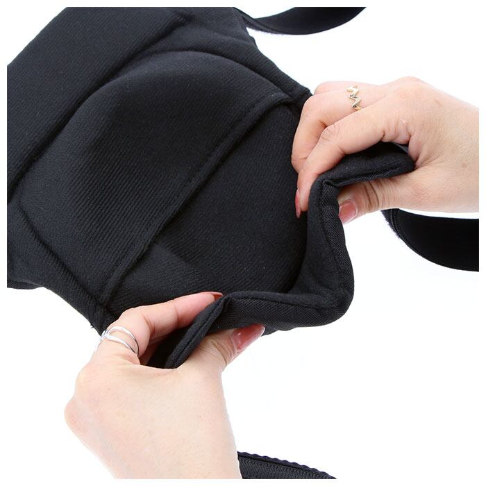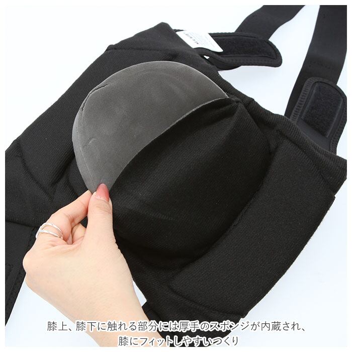 ・膝上、膝下に触れる部分には厚手のスポンジが内蔵され、膝にフィットしやすいつくり。