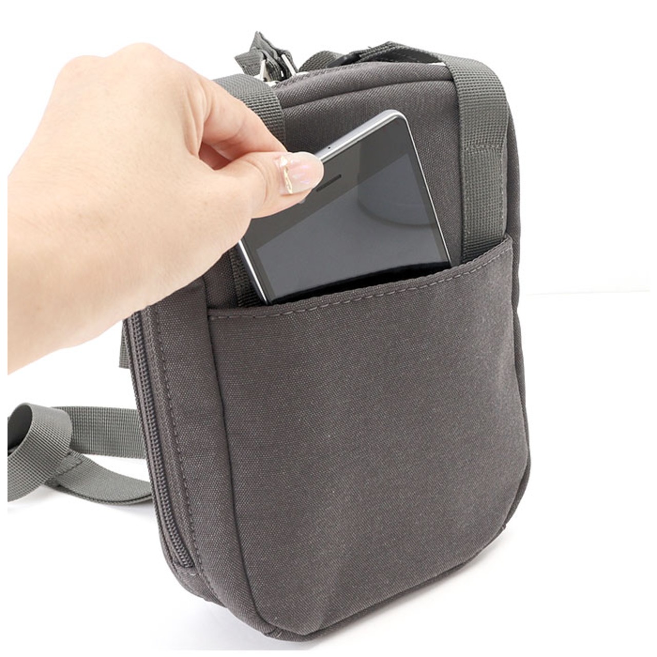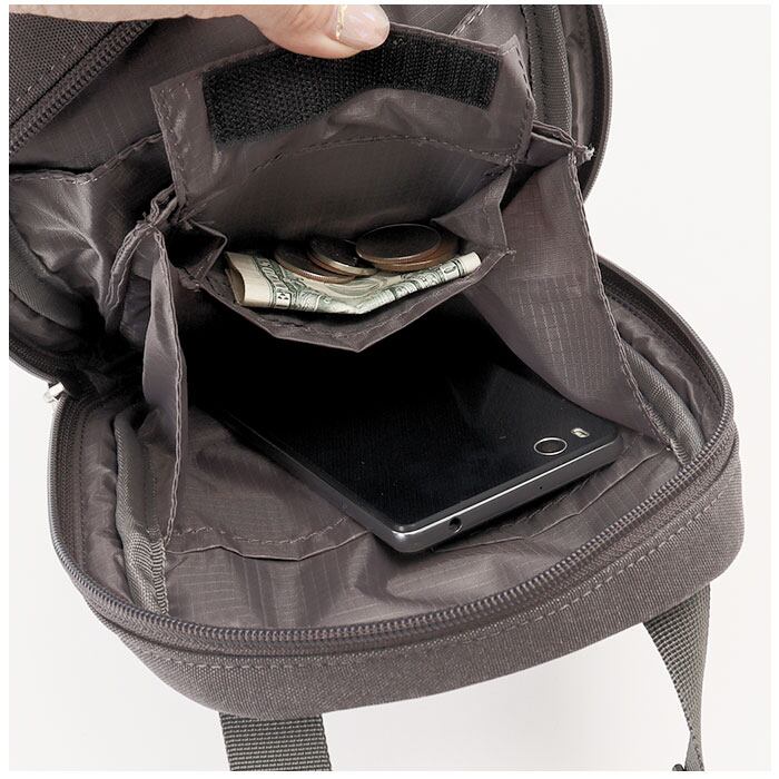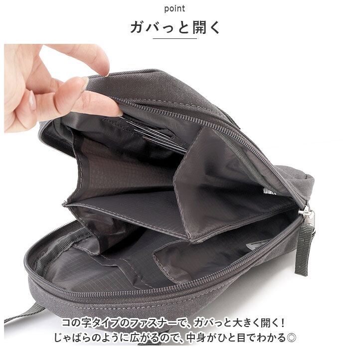 ・コンパクトに見えて、マチがあるのでしっかり大容量。お財布以外にも、スマホ、タオル、バッテリーなど、必要最低限の荷物が入る。