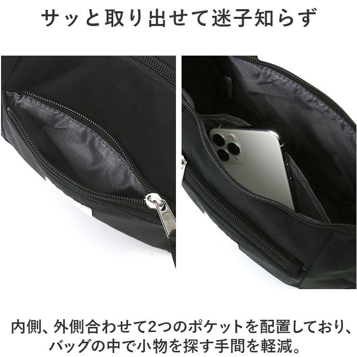 ・内側、外側合わせて2つのポケットを配置しており、バッグの中で小物を探す手間を軽減。