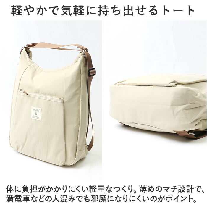・体に負担がかかりにくい軽量なつくり。薄めのマチ設計で、満電車などの人混みでも邪魔になりにくいのがポイント。