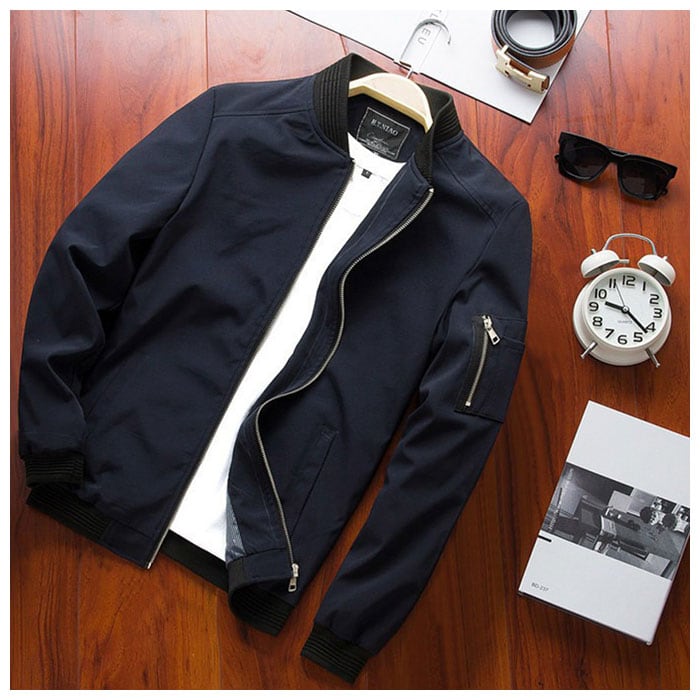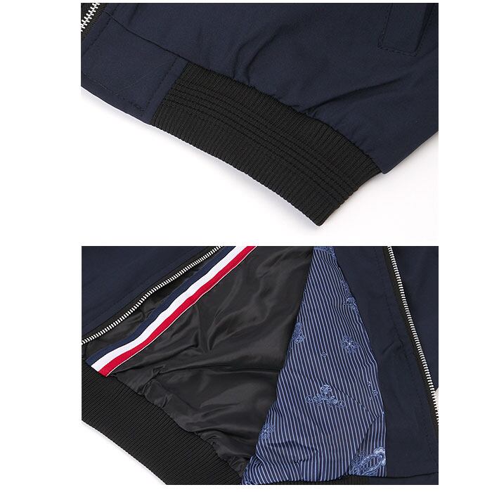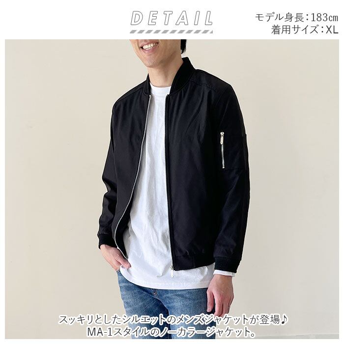 ・MA-1スタイルのノーカラージャケット。襟元はリブ仕様となっており、もたつかずフード付きのパーカーやマフラー等と合わせやすい作りに。