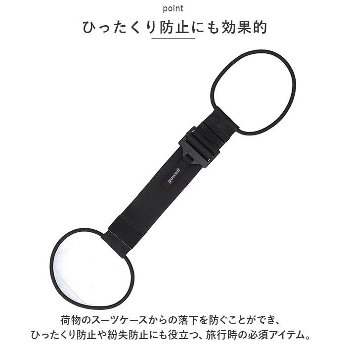 ・荷物のスーツケースからの落下を防ぐことができ、ひったくり防止や紛失防止にも役立つ、旅行時の必須アイテム。