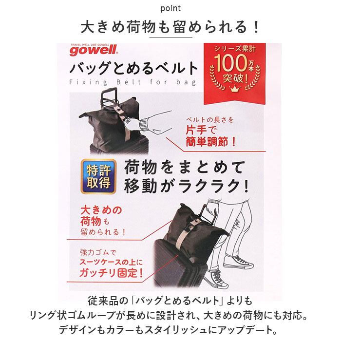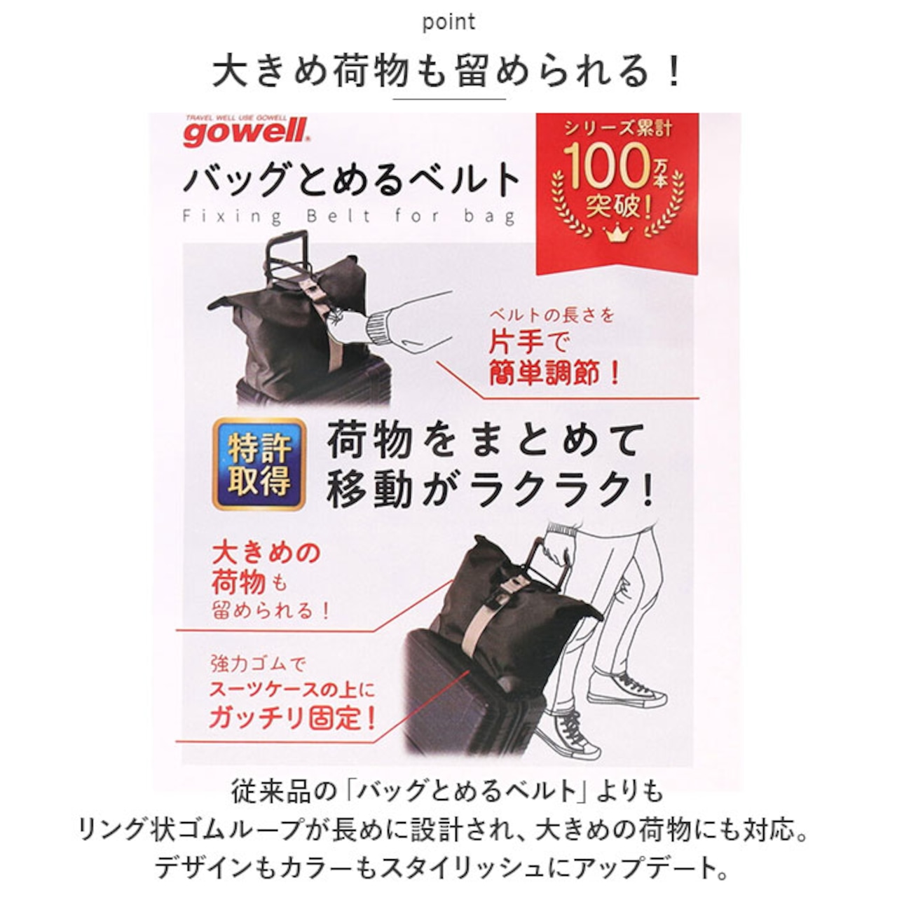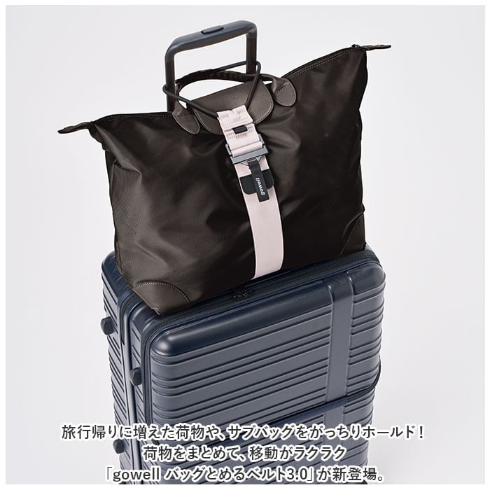 ・旅行帰りに増えた荷物や、サブバッグをがっちりホールド!荷物をまとめて、移動がラクラク「gowell バッグとめるベルト3.0」が新登場。