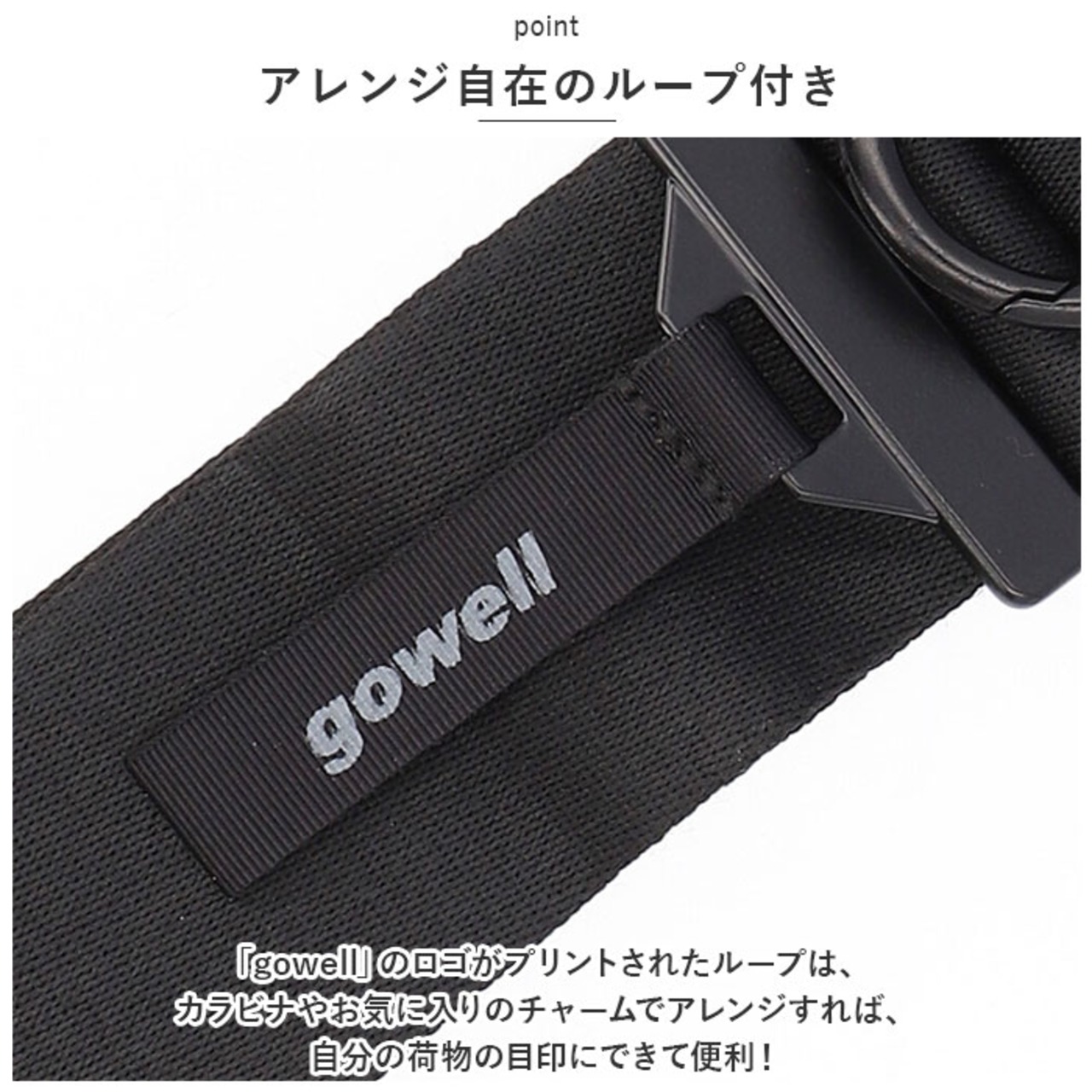 ・「gowell」のロゴがプリントされたループは、カラビナやお気に入りのチャームでアレンジすれば、自分の荷物の目印にできて便利!