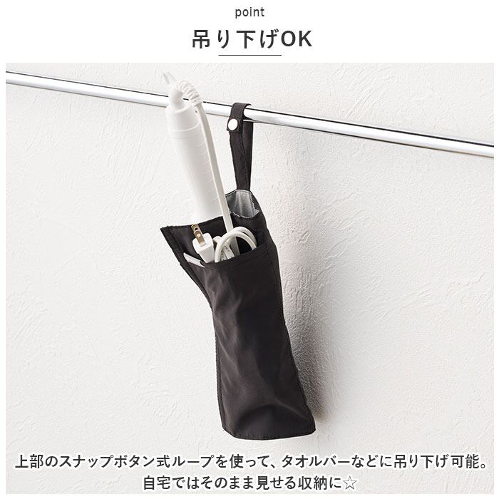・本体部分内生地の耐熱温度は約180度!使用後、温度が高い状態のままのヘアアイロンも収納できる便利アイテム。一時置きとしても活躍。