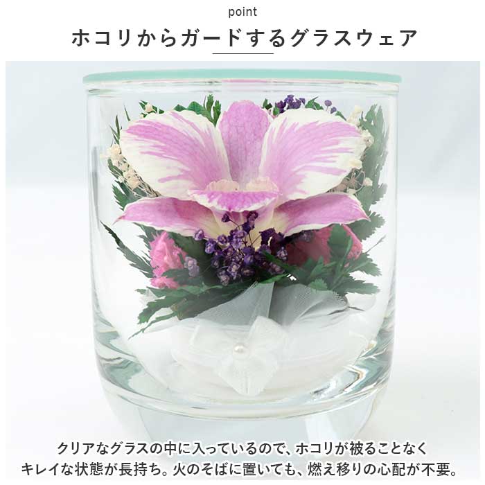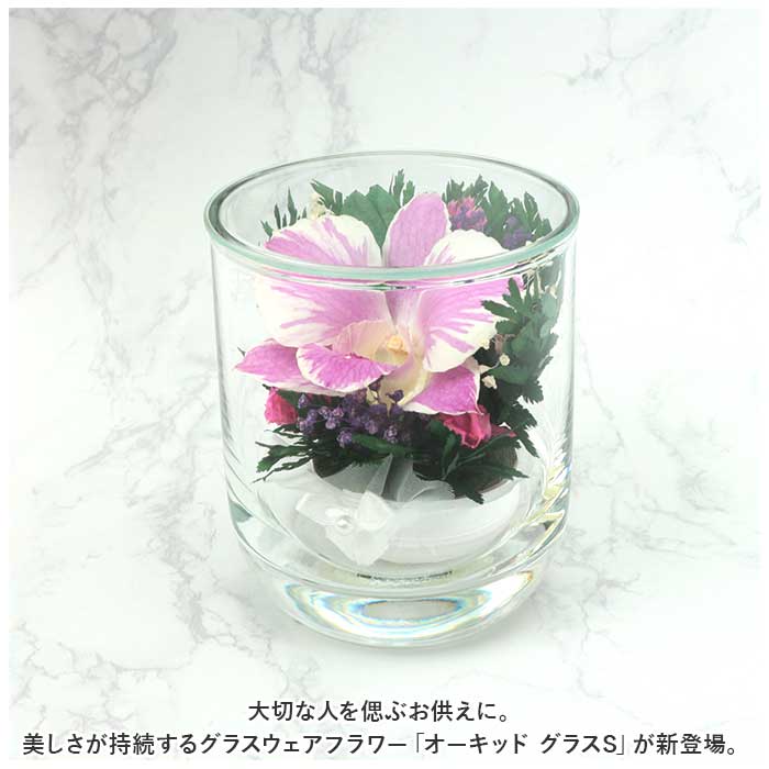 ドライフラワー ガラスケース 通販 オーキッド グラスS お供え 花 造花 仏花 仏壇用 アレンジメントフラワー お供え花アレンジメント 法要 49日 お彼岸 命日 お悔やみ 贈り物 喪中 見舞い おしゃれ かわいい 置物 ギフト インテリア 雑貨