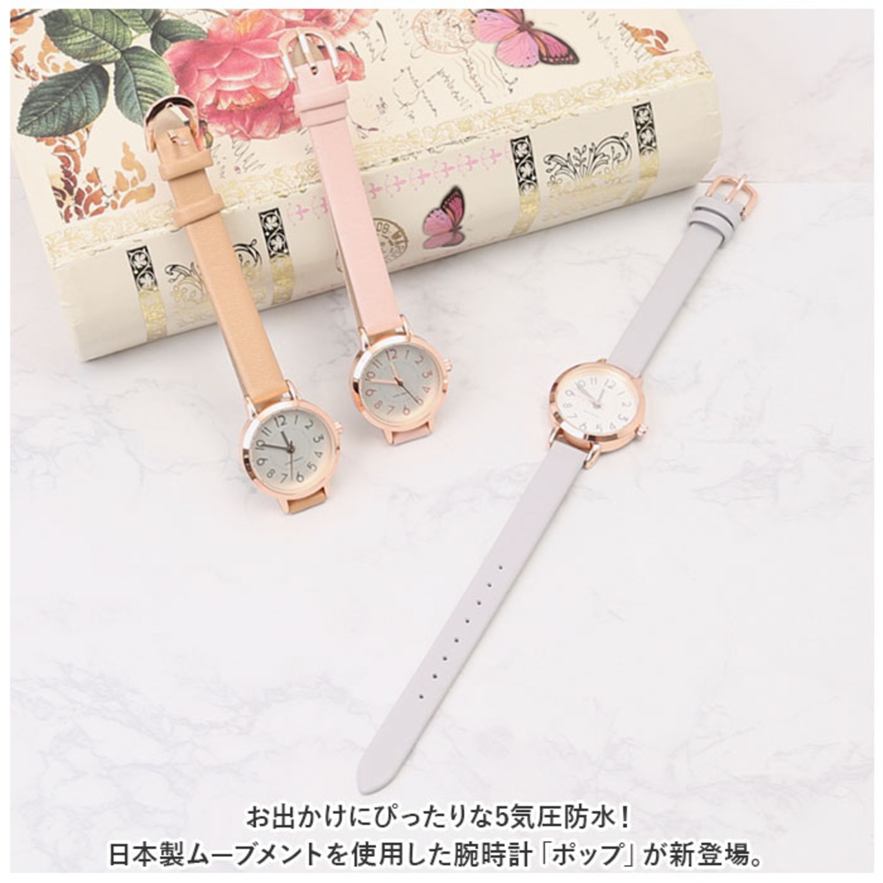 ・お出かけにぴったりな5気圧防水!日本製ムーブメントを使用した腕時計「ポップ」が新登場。