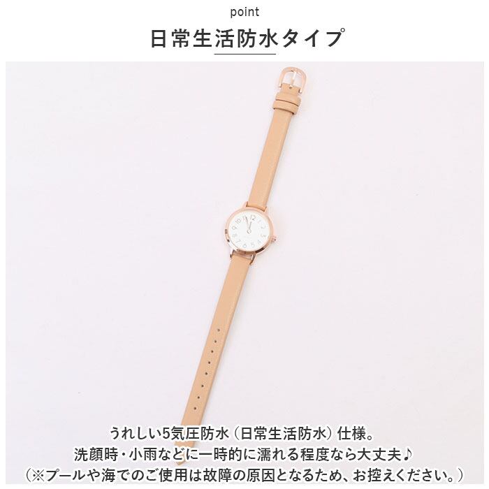 ・うれしい5気圧防水(日常生活防水)仕様。洗顔時・小雨などに一時的に濡れる程度なら大丈夫♪(※プールや海でのご使用は故障の原因となるため、お控えください。)