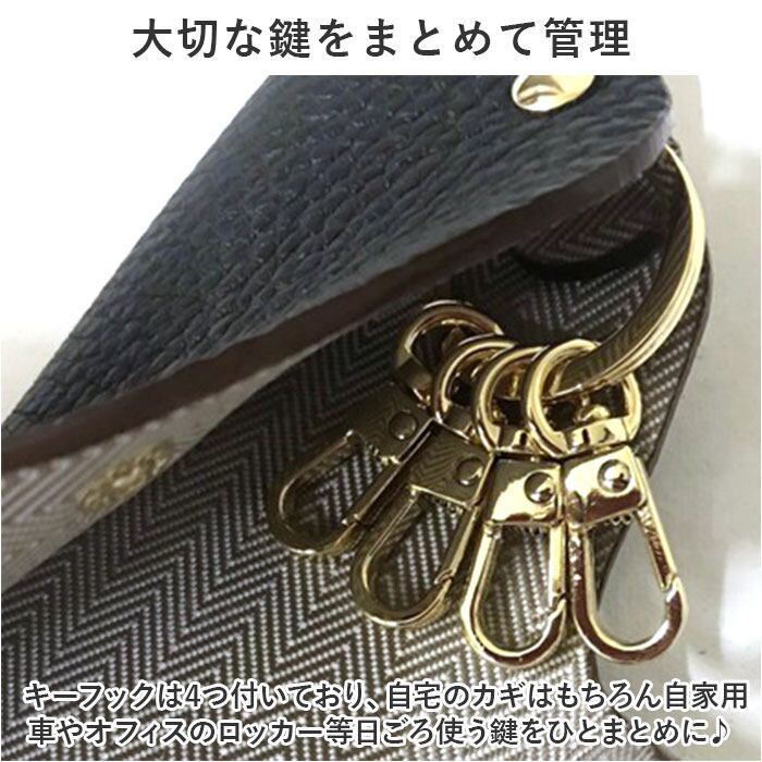 ・キーフックは4つ付いており、自宅のカギはもちろん自家用車やオフィスのロッカー等日ごろ使う鍵をひとまとめに♪