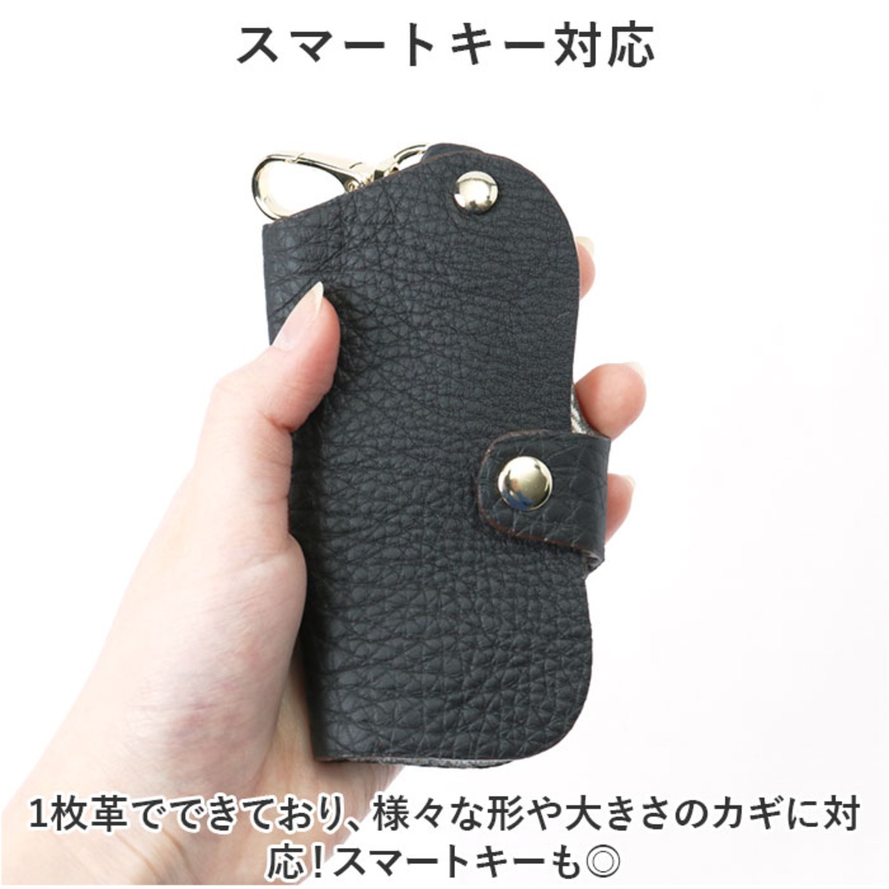 ・1枚革でできており、様々な形や大きさのカギに対応!スマートキーも◎