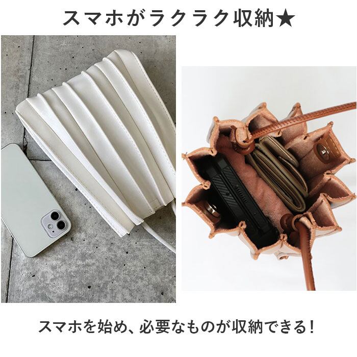 プリーツデザイン スマホショルダーL