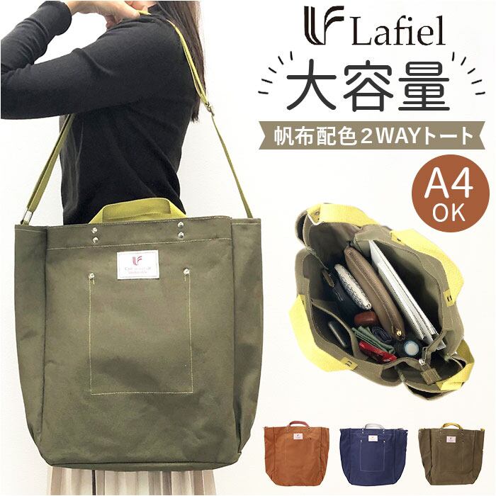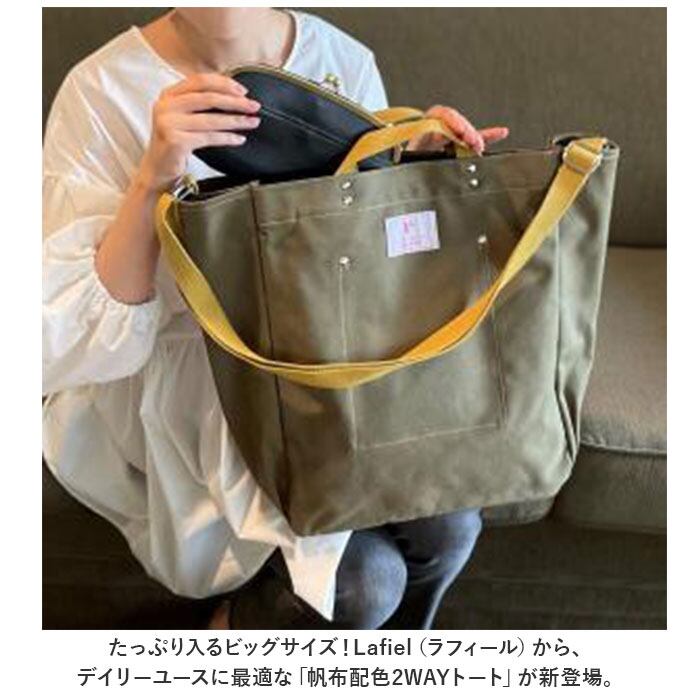 ・たっぷり入るビッグサイズ!Lafiel(ラフィール)から、デイリーユースに最適な「帆布配色2WAYトート」が新登場。