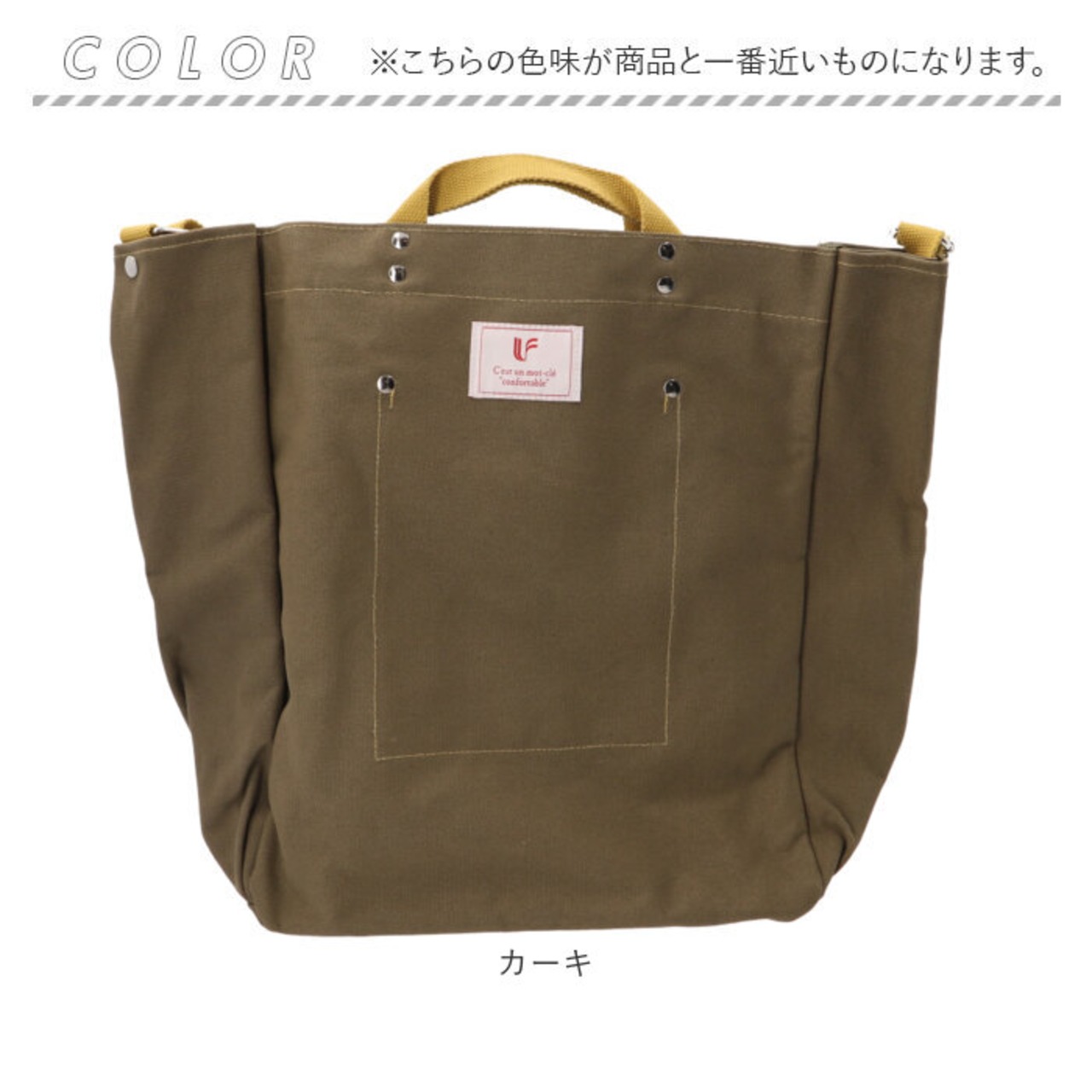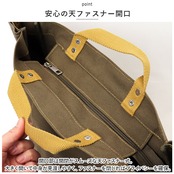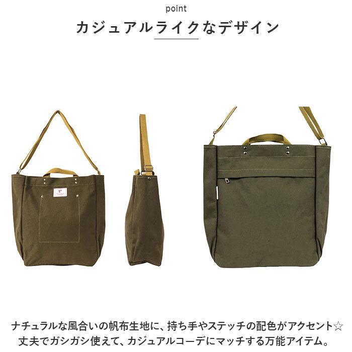 ・ナチュラルな風合いの帆布生地に、持ち手やステッチの配色がアクセント☆丈夫でガシガシ使えて、カジュアルコーデにマッチする万能アイテム。