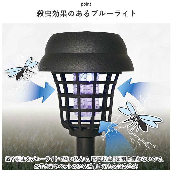 電撃殺虫器 ソーラー 2個セット 通販 HAC3698A 殺虫灯 殺虫ライト ソーラー殺虫ライト 虫除け 虫よけ 2WAY LEDライト ブルーライト ガーデンライト 屋外 防雨 照明 ライト ガーデニング雑貨 ガーデニング用品 おし