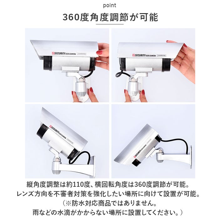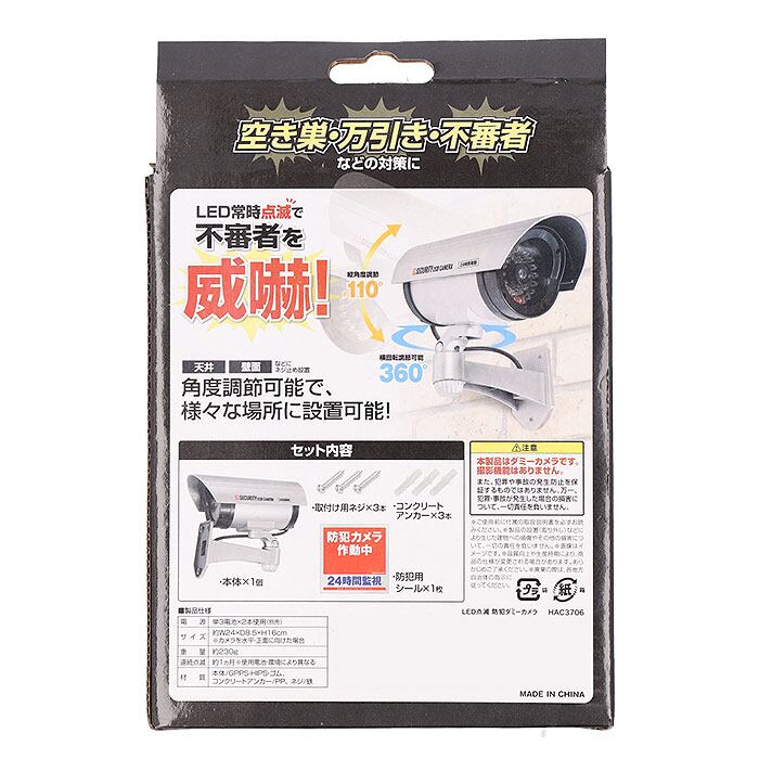 ・赤色LEDランプが常時点滅して、不審者に監視の目があることを警告!空き巣・万引き・犯罪者対策に効果を発揮する本格仕様。(※カメラとしての撮影・録画機能はありません。犯罪を抑制することを目的とした製品です。)