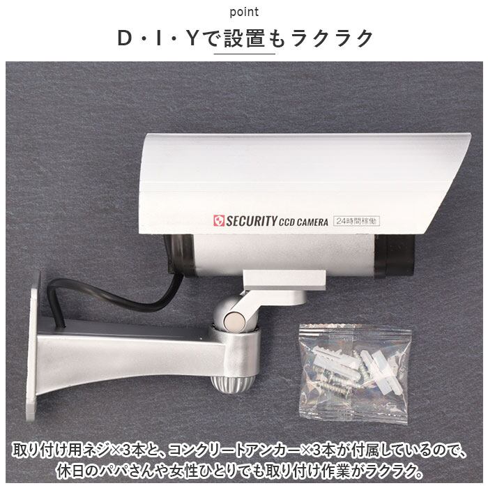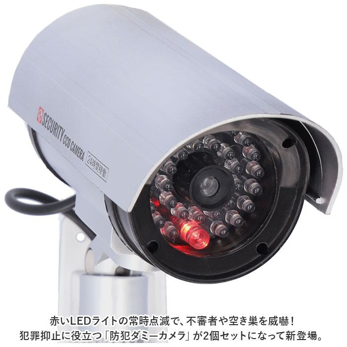 ・赤いLEDライトの常時点滅で、不審者や空き巣を威嚇!犯罪抑止に役立つ「防犯ダミーカメラ」が2個セットになって新登場。