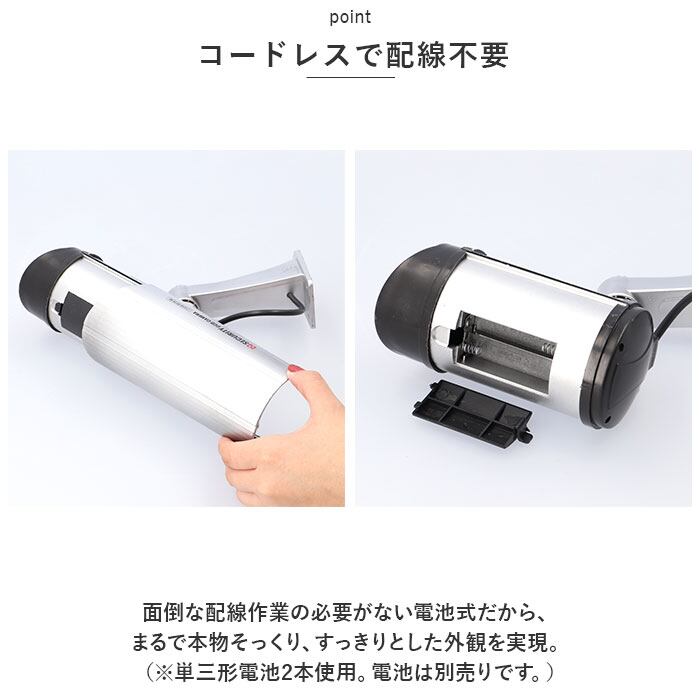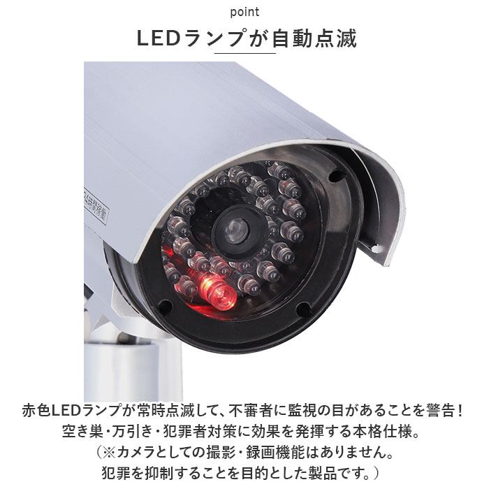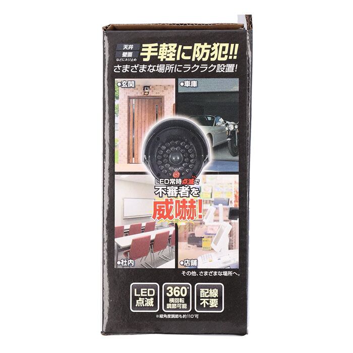 ・赤色LEDランプが常時点滅して、不審者に監視の目があることを警告!空き巣・万引き・犯罪者対策に効果を発揮する本格仕様。(※カメラとしての撮影・録画機能はありません。犯罪を抑制することを目的とした製品です。)