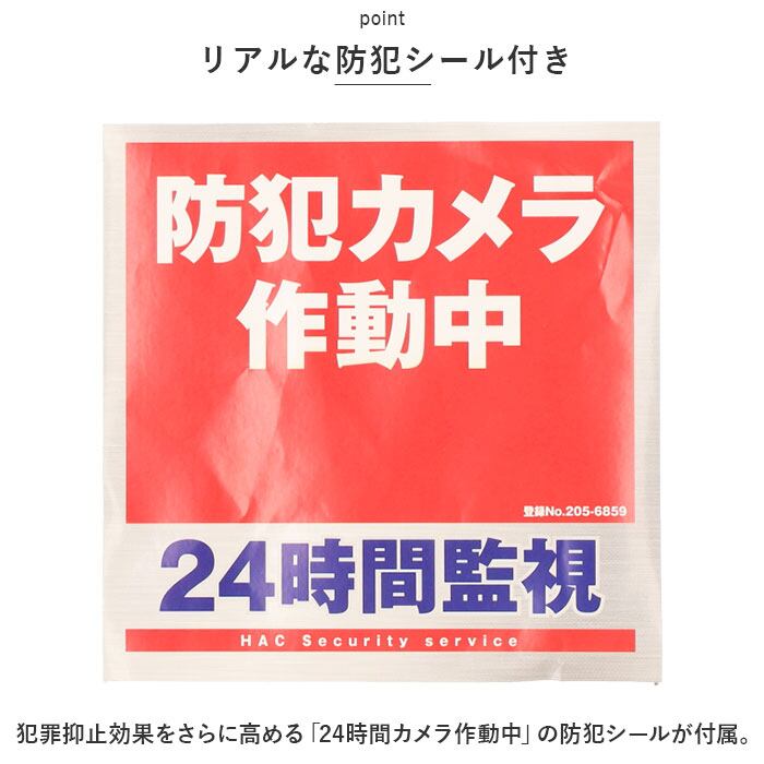 ・犯罪抑止効果をさらに高める「24時間カメラ作動中」の防犯シールが付属。