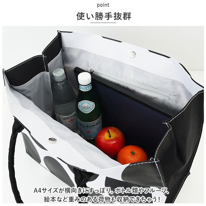 ・A4サイズが横向きにすっぽり。ボトル類やフルーツ、絵本など重みのある荷物も収納できちゃう!