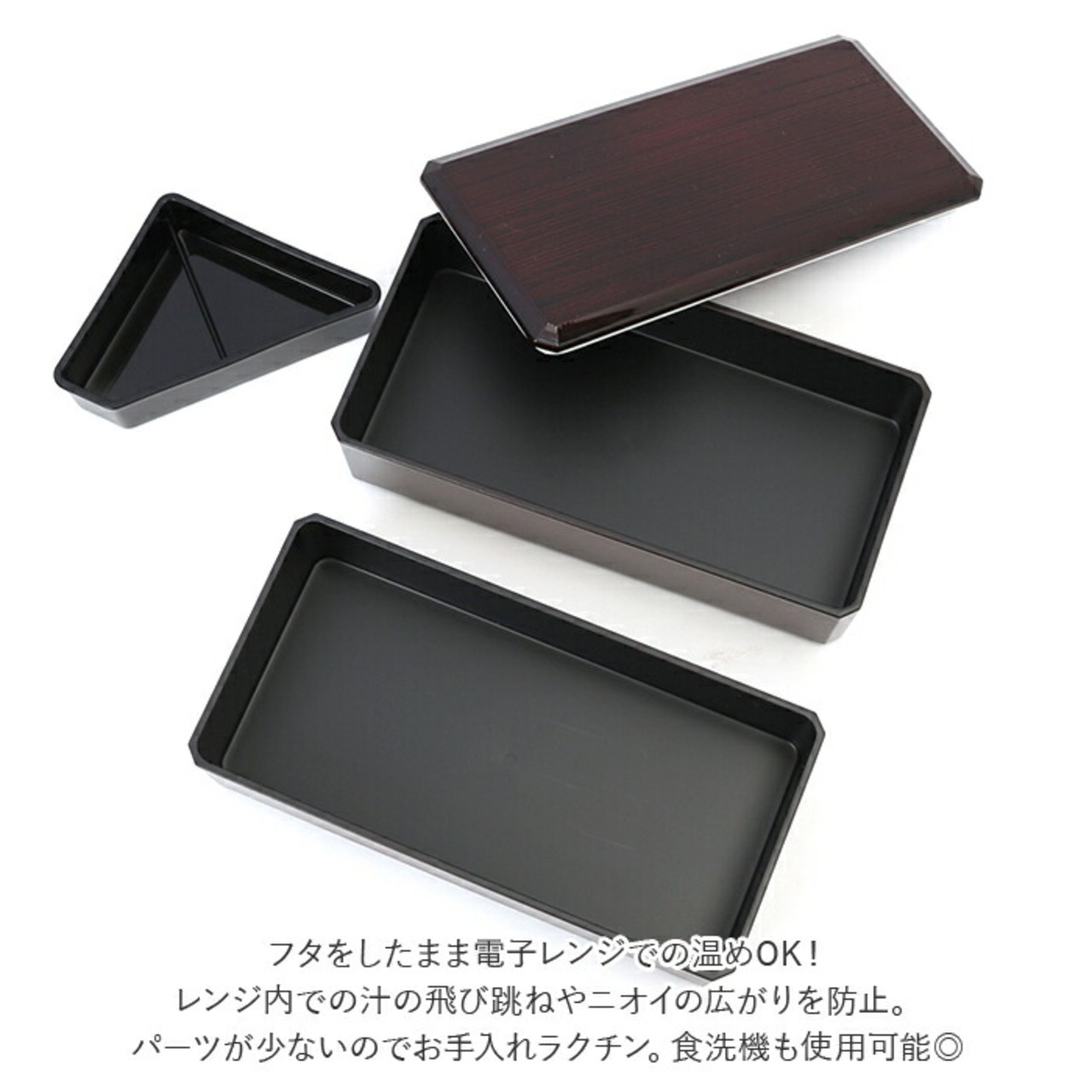 ・おかずが詰めやすいシンプルな長方形二段タイプ。上段・下段ともに各400ml、合計800mlサイズで、食べ盛りの学生さんやパパさんも満足◎