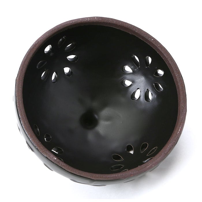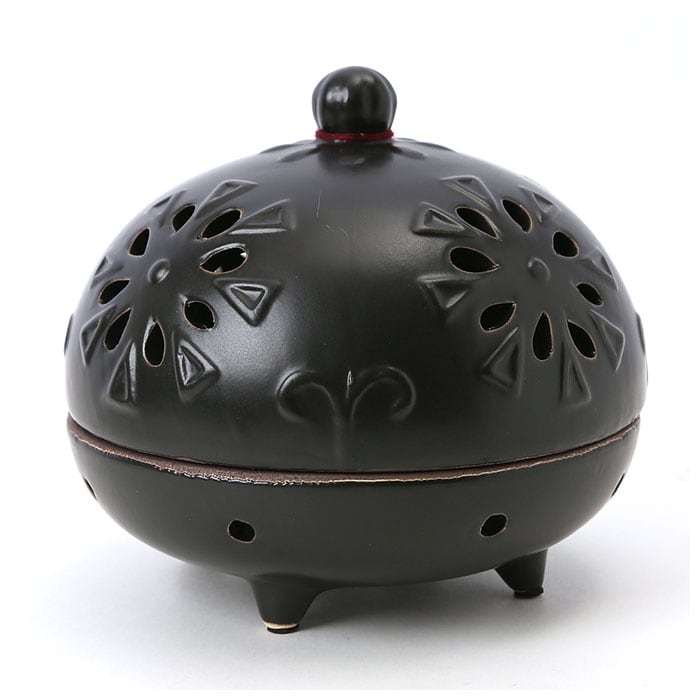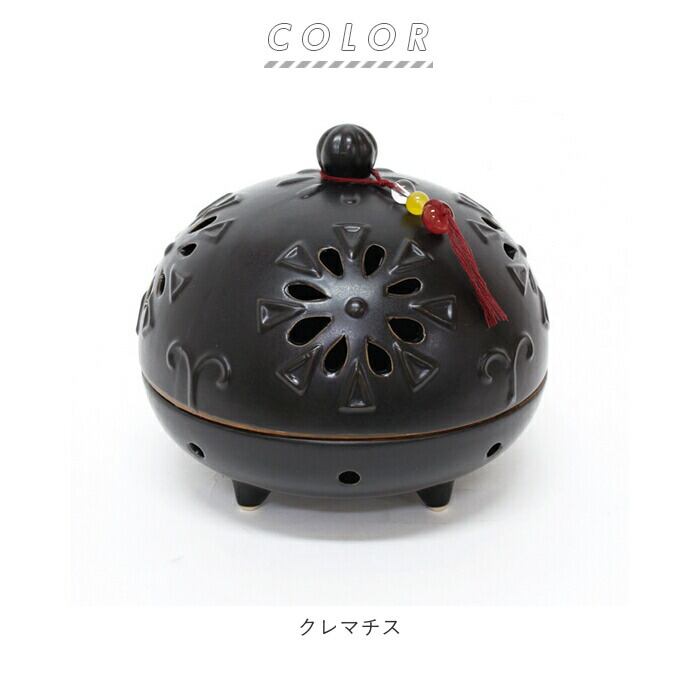 ・滑らかな陶器の表面に、花火のように賑やかなクレマチスや、流れるように涼しげな葵の葉をあしらった、昔懐かしい蚊取り線香ホルダー。