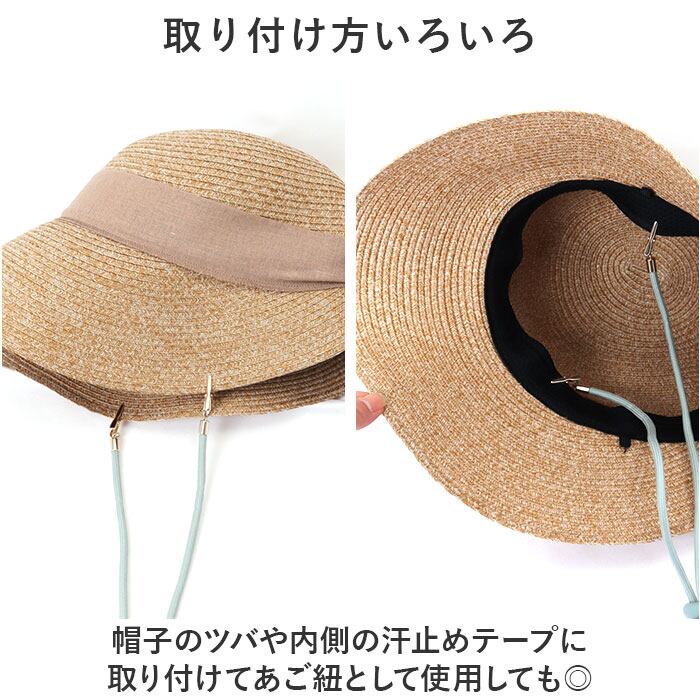 ・帽子のツバや内側の汗止めテープに取り付けてあご紐として使用しても◎
