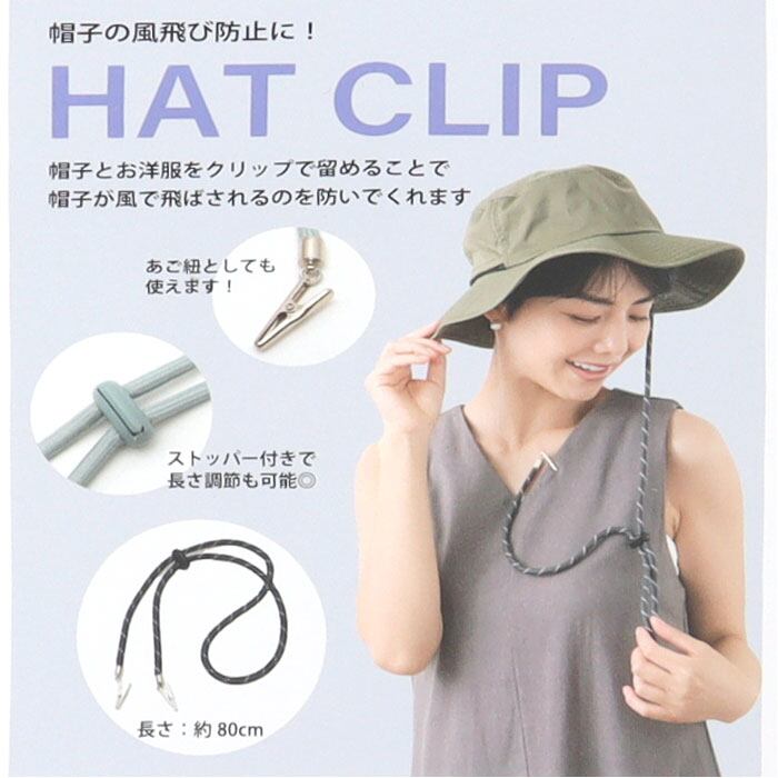 ・お手持ちの帽子と洋服にクリップで挟んで留めるだけ!どんな帽子にも取り付けられる便利なアイテム。