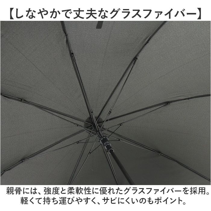 ・親骨には、強度と柔軟性に優れたグラスファイバーを採用。軽くて持ち運びやすく、サビにくいのもポイント。